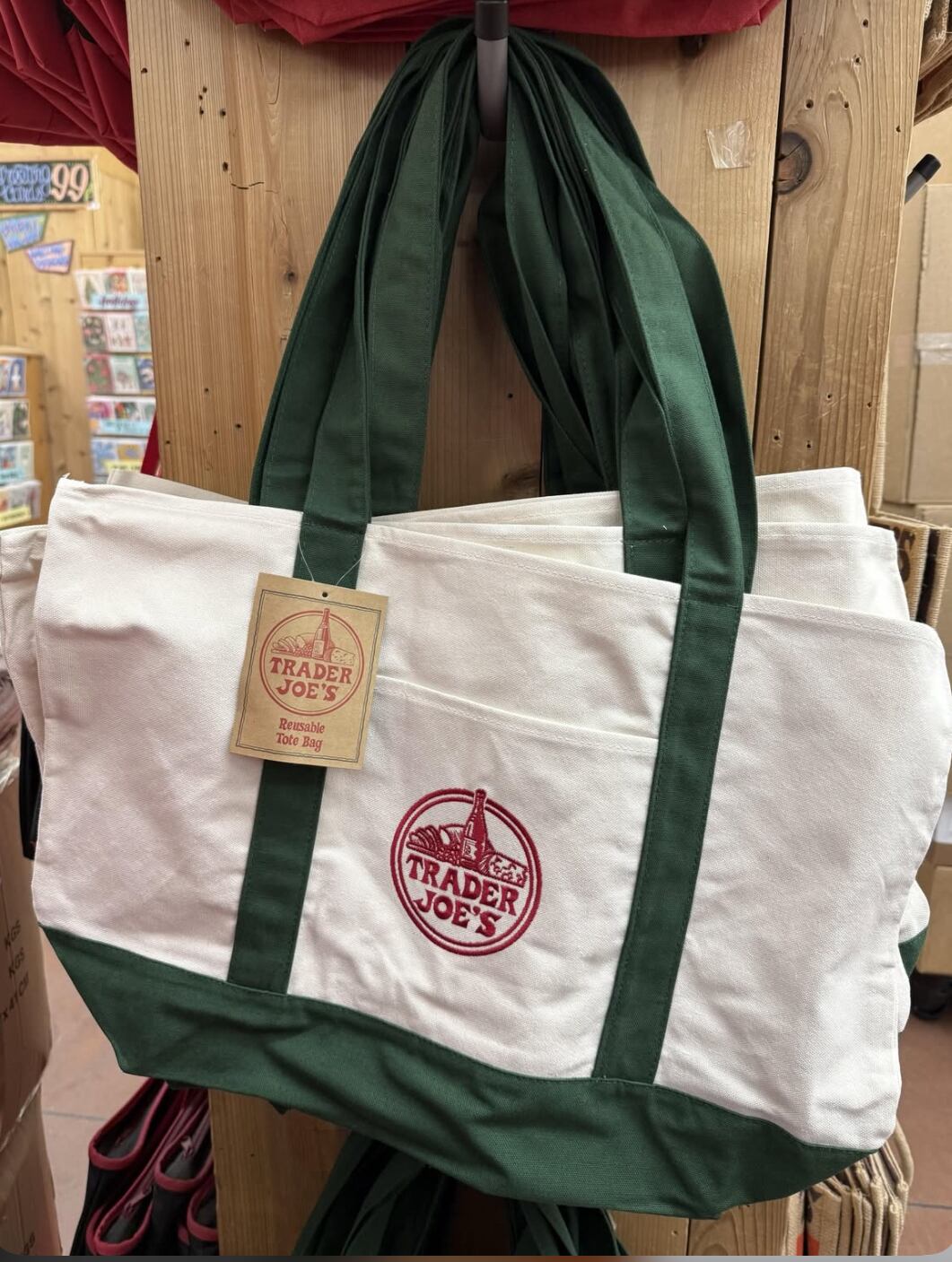 TRADER JOE’S 定番のカーキトートバッグ(大)になります。