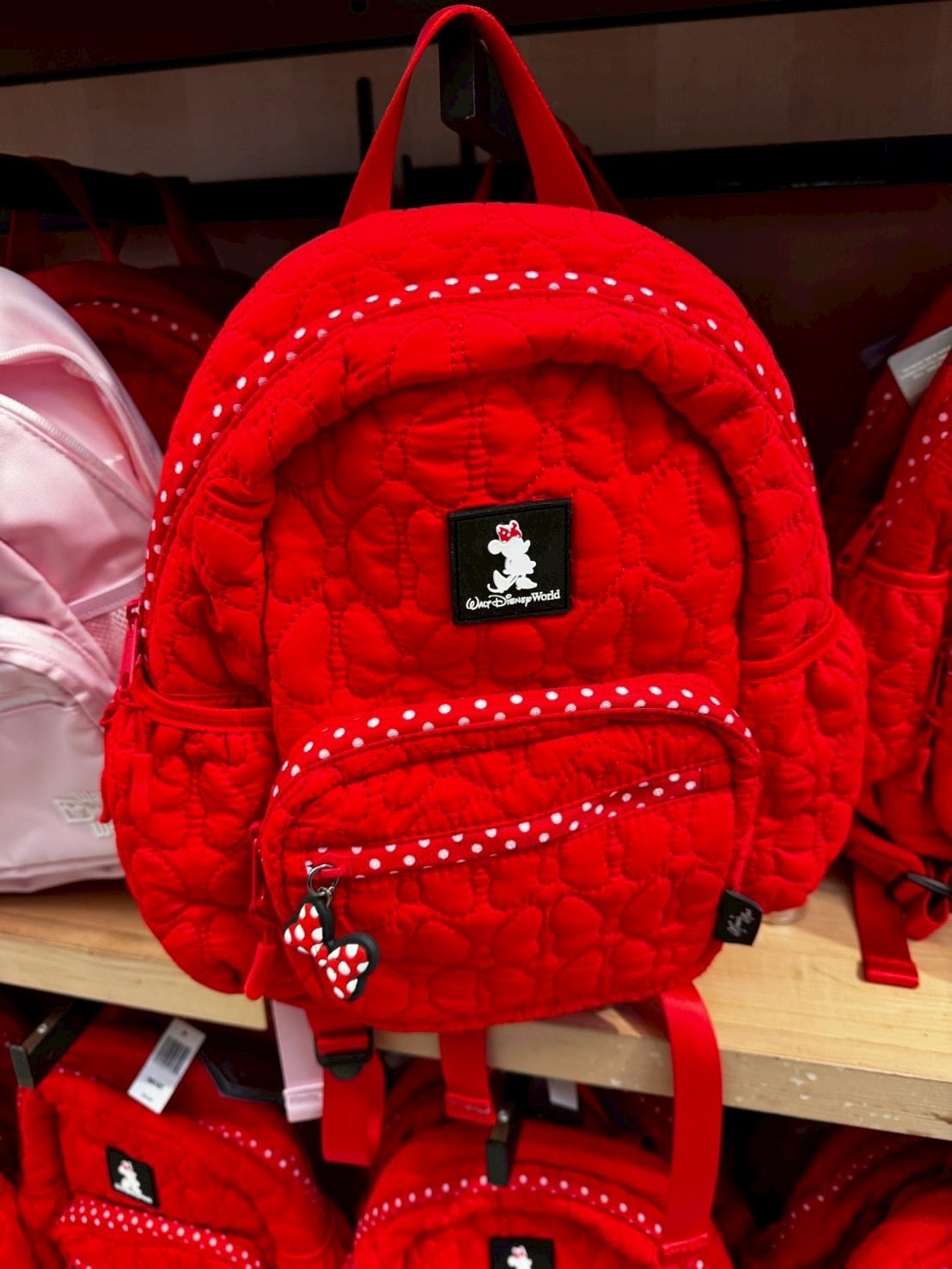 WDW カチューシャホルダー付きレッドキルティングミニーリボンバックパック